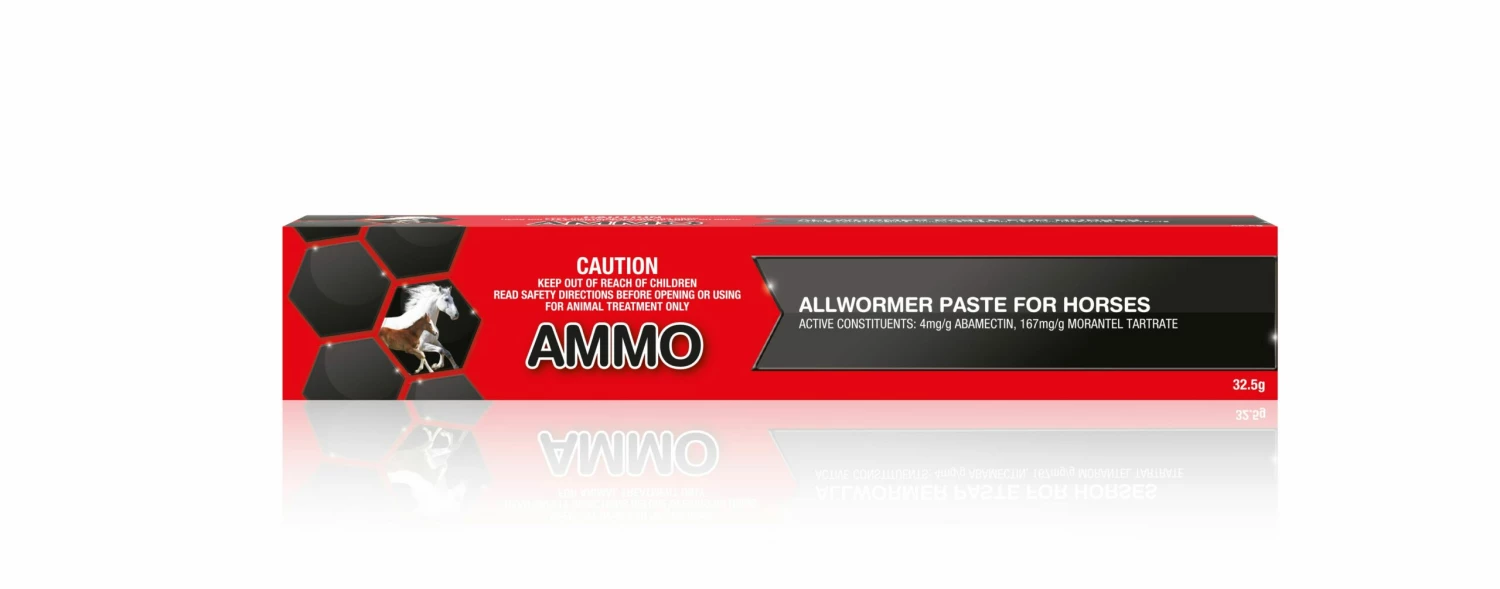 AMMO® Allwormer Paste is a broad spectrum abamectin and morantel tartrate horse worm and bot paste that treats and controls tapeworms, large strongyles, pinworm, roundworm, hairworm, neck and intestinal threadworm, bots, lungworm and large mouthed stomach worms, as well as skin lesions caused by Habronema spp, Draschia spp cutaneous larvae (summer sores) and Onchocerca spp microfilariae (cutaneous onchocerciasis).
