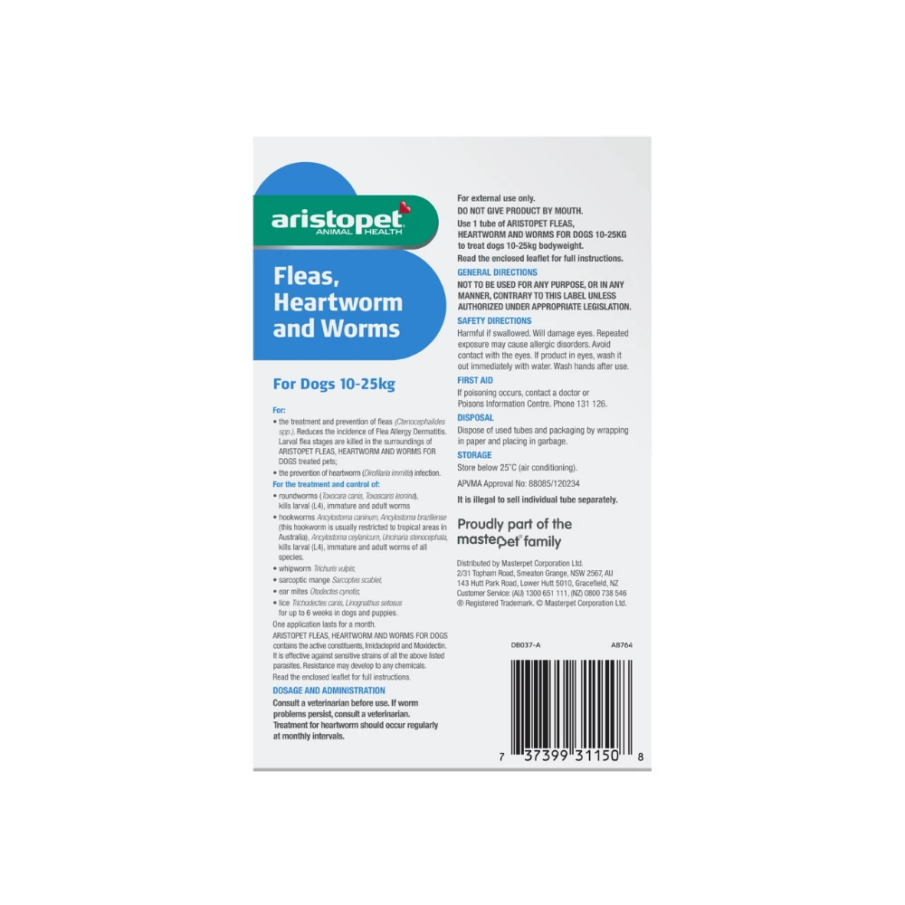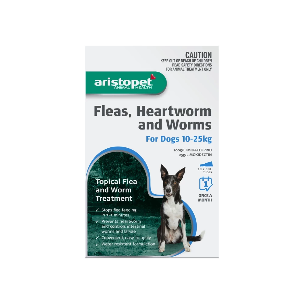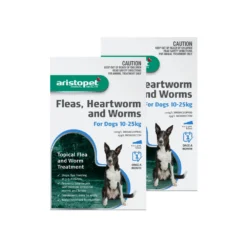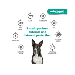 Specially designed for dogs weighing 10-25kg. This innovative solution offers an all-in-one approach to pet care, ensuring your furry friend receives the utmost protection against common pests and parasites. Aristopet’s spot-on treatment is the ultimate choice for dog flea treatment, and dog worming treatment, all bundled into one convenient package that provides exceptional value.