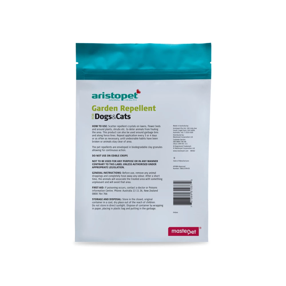 Rediscover the joy of a pristine garden oasis with Aristopet Garden Repellent for Dogs & Cats 400g. Formulated to deter pets from toileting in specific areas, these repellent crystals provide a practical solution for maintaining a clean and beautiful outdoor space. Infused with natural repellents like Methyl Nonyl Ketone and Citronella, this formula ensures effective and long-lasting protection against unwanted behaviour. Say goodbye to the hassle of constant clean-ups and hello to a tranquil garden retreat with Aristopet Garden Repellent.