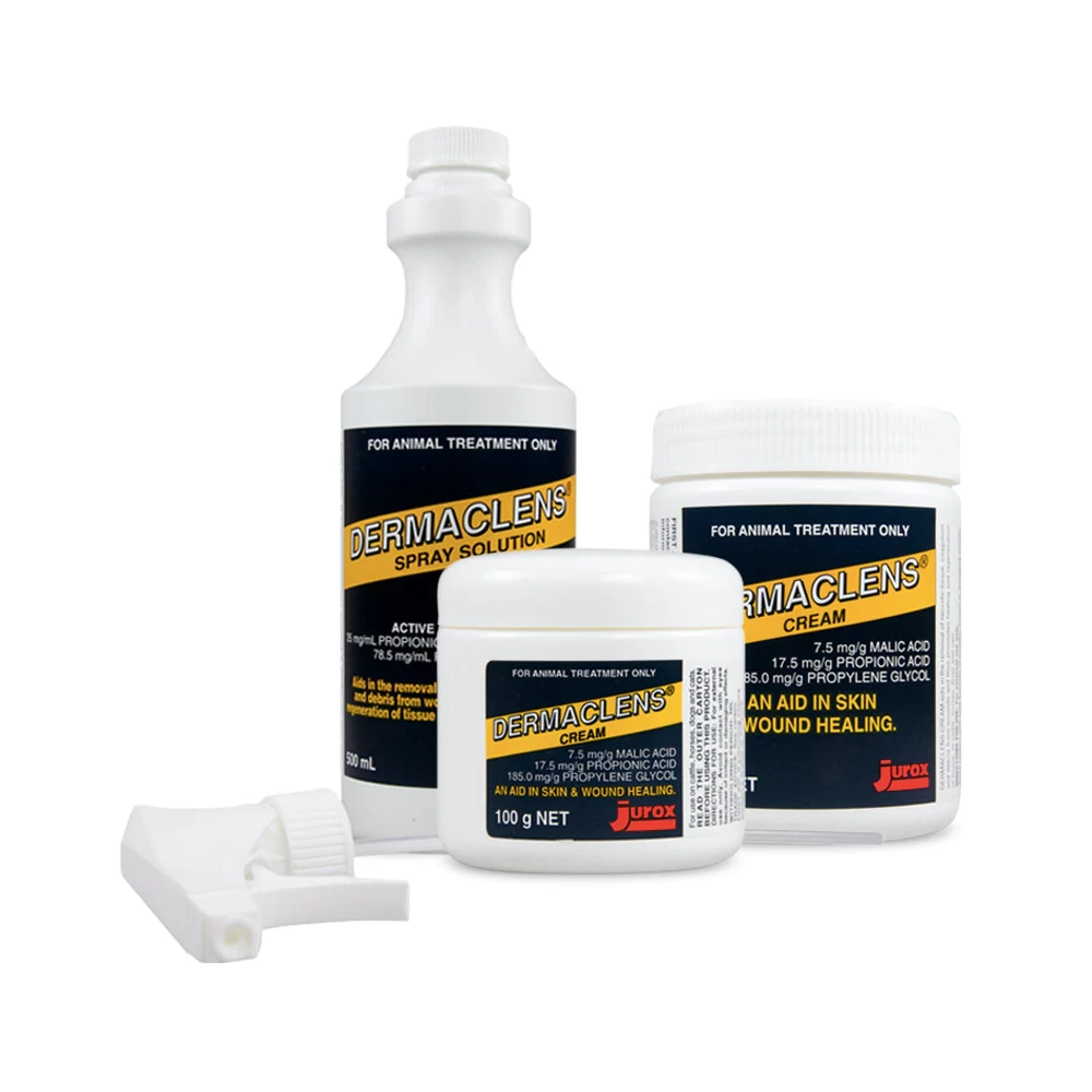 Dermaclens aids in the removal of necrotic tissue, coagulum and debris. Promotes healing and regeneration of tissue in cattle, horses, dogs and cats. Indicated for: