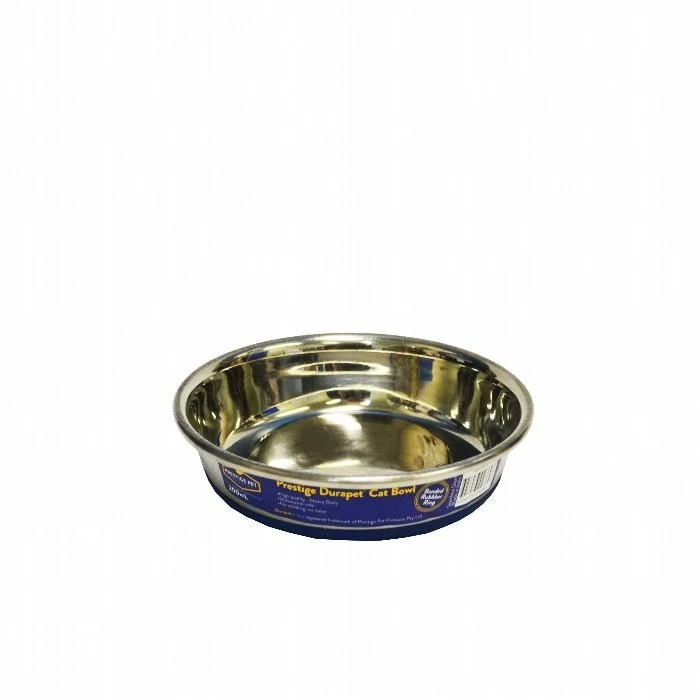 This stainless steel cat bowls feature a patented fused rubber ring along the base rim that makes them anti-skid and rattle-free. Constructed of heavy gauge stainless steel with a permanent buff finish on the outside and a fine mirror finish on the inside for easy cleaning.
