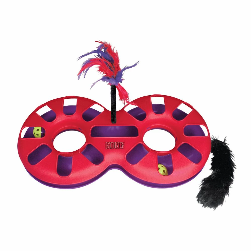 The KONG Eight Track provides a fast track of fun for kitty’s that love to bat and pounce. Two rattling balls zoom around the paw-powered course firing up natural hunting instincts of batting fun. The fluffy Kickeroo tail and feather plume ignite a kitty’s desire to bat pounce and kick. A healthy dose of KONG North American Premium catnip extends play sessions adding up to independent play sessions that are sure to delight.
