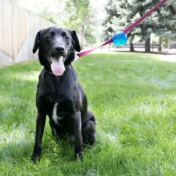 KONG TagALong attaches to the leash making it easy to always bring a ball along for fetching fun. Unique grippers on the inside of the TagALong toy’s opening secure it to both rounded and flat-sided leashes securing the toy to the leash when out on-the-go. Pull the KONG TagALong off for play and this bouncy ball launches dogs into tons of healthy fetching, satisfying natural chasing instincts.