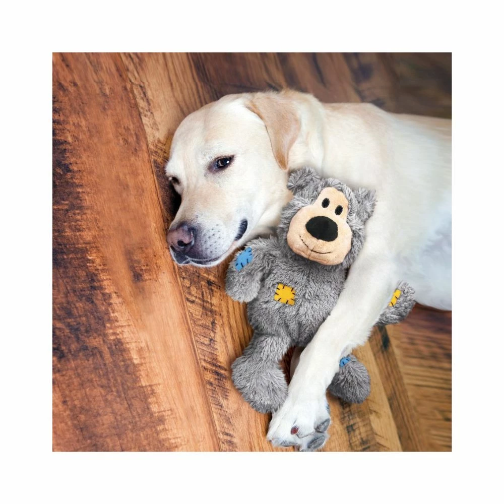 KONG Wild Knots are soft and cuddly on the outside while durable and strong on the inside. Wild Knots bears are sure to be a hit with dogs and their pet parents. Dogs love the knotted skeleton, and the reinforced plush body provides extra durability. KONG Wild Knots have less stuffing for less mess and they squeak to entice play.