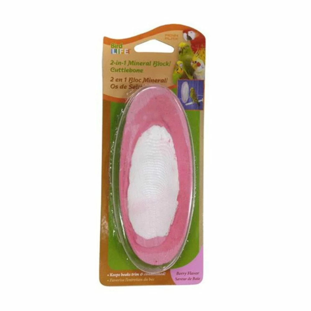 Berry 2 in 1 cuttlebone and mineral block combo for birds is a great source of calcium, healthy source of minerals, and keeps your birds beak healthy.