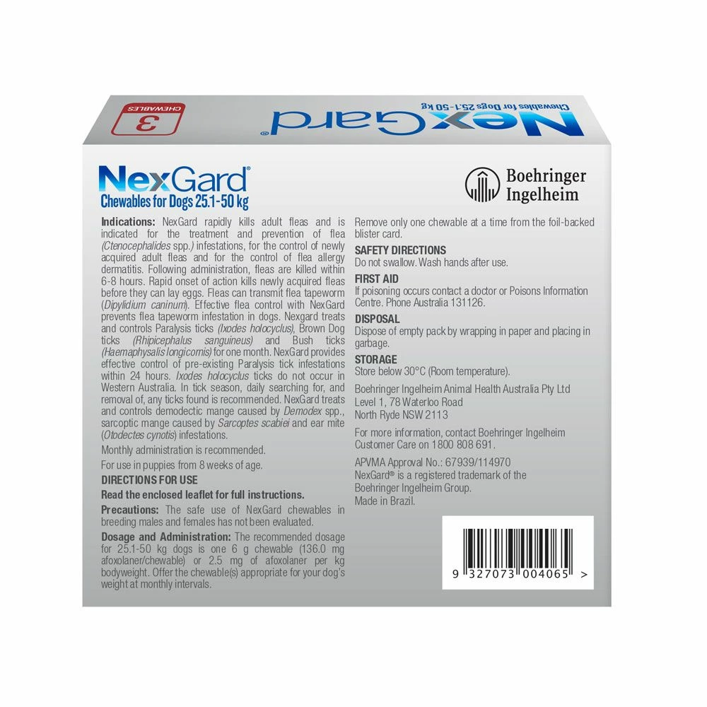 - Advanced Flea and Tick Protection: NexGard Chewables are formulated to provide a full month of comprehensive flea and tick protection, ensuring your dog stays itch-free and healthy.
