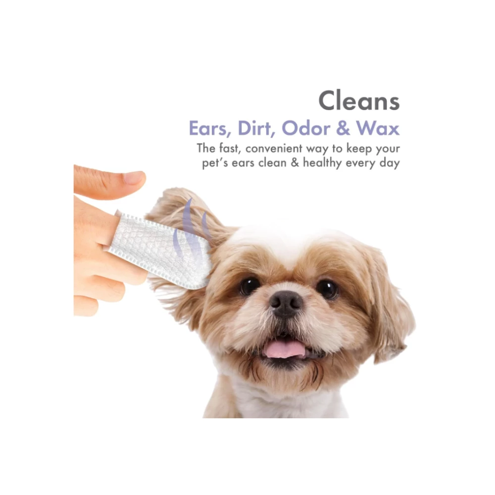 - Slide Petkin Fingertip Ear Wipes onto your index finger.
