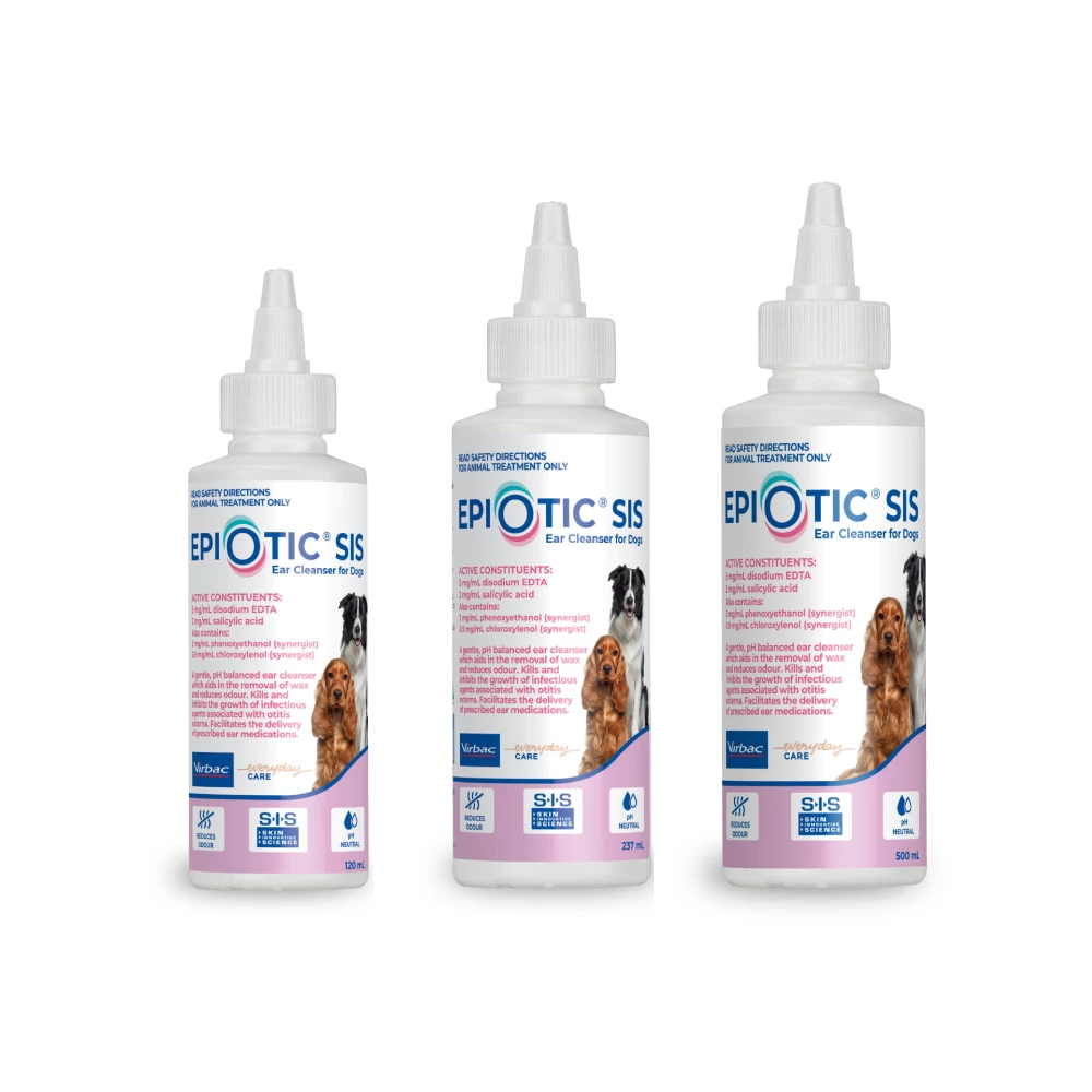 The Epiotic SIS Dog Ear Cleanser is an exceptional solution carefully crafted to ensure your beloved pet’s ear health remains in optimal condition. Developed by veterinary experts, this advanced cleanser offers a gentle and effective way to clean and maintain healthy ears in both dogs and cats. With its unique formulation and user-friendly application, the Epiotic SIS Dog Ear Cleanser guarantees reliability in promoting excellent ear hygiene. It is a pH-balanced cleanser that gently eliminates wax buildup, reduces unpleasant odours, and actively combats infectious agents linked to external otitis, while also facilitating the delivery of prescribed ear medications. Notably, this product has demonstrated microbicidal action against Australian clinical isolates, including MRSP.