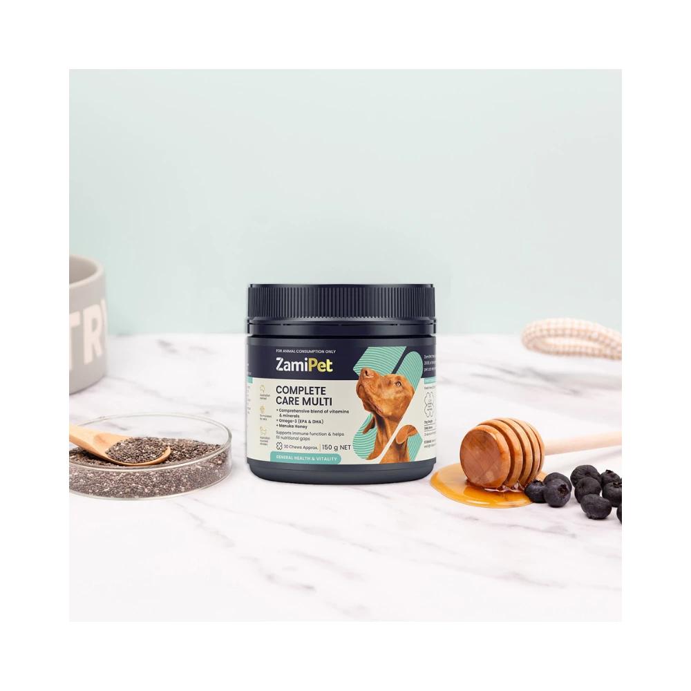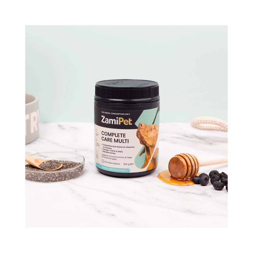 Unveil ZamiPet Complete Care Multi the definitive answer to upholding your pet’s complete well-being. These delectable bites are expertly crafted to deliver holistic care and bolster peak health for your adored furry companion. Infused with a potent fusion of selectively chosen elements, ZamiPet Complete Care Multi guarantee that your pet receives the necessary nutrients for a life filled with vibrancy.